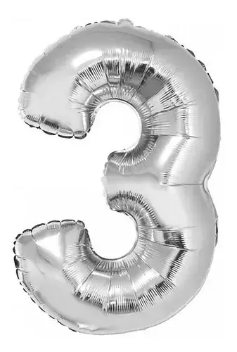 BALÃO N.3 PRATA METALIZADO 40CM